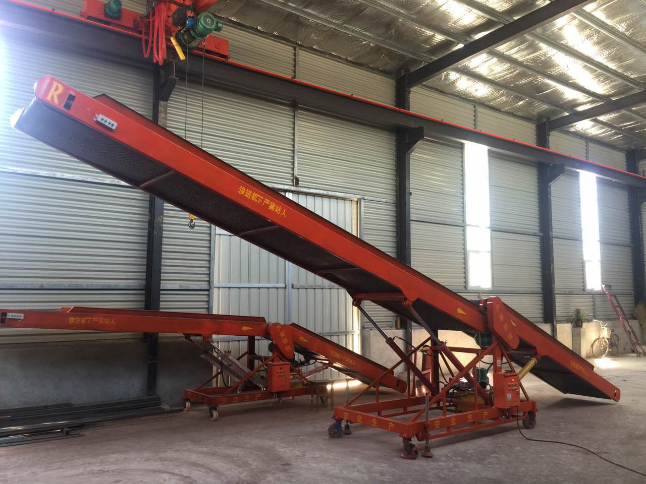 移动式胶带装卸输送机是一种功效高、使用方便、机动性好的输送装卸设备。此机械是专门为粮仓、面粉厂、仓库、工地堆放砂石等量身定做的一种机械。与拖拉机、平板车配合使用,移动灵活。既省时省力,又提高工作效率,是加工单位理想的输送设备。适用于散粮或包装物进仓堆高、堆垛、装车、卸车和中间转接输送等。环形胶带,充气轮胎,电动升降,自动保护电控箱,快速电器插头。整机轻巧、移动灵活、噪音小、操作简单、维修方便、包装运行平稳,破包率低,能满足输送包装物的一切要求,高度可随意调节,可水平输送,也可登高作业。